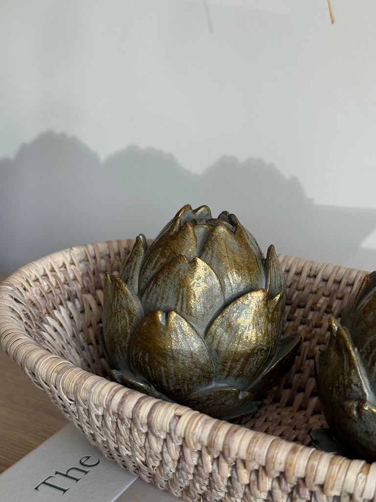 Elevate your space with the Antique Bronze Artichoke, a stunning sculpture that blends classic charm with modern appeal. Its detailed, layered petals and rich antique finish bring warmth and sophistication, making it an ideal statement piece for any décor style. Perfectly designed to draw the eye and add a refined touch to your home, this artichoke sculpture transforms any room into a tasteful showcase.