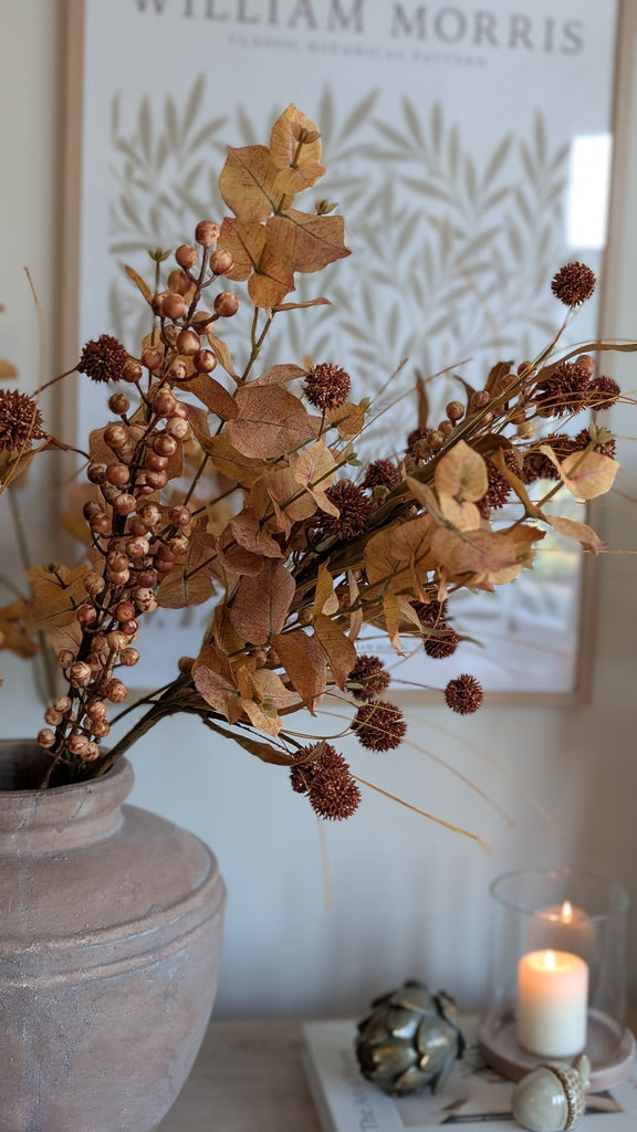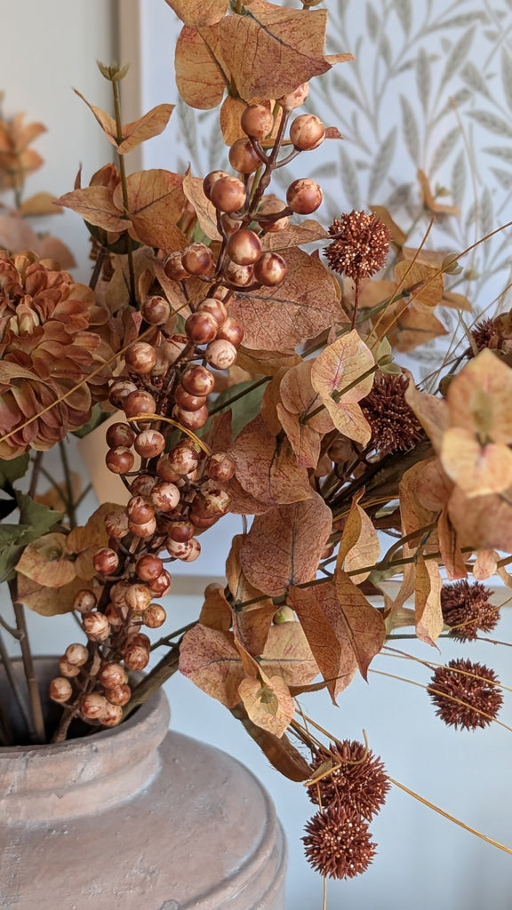 Elevate your seasonal décor with the Autumn Berry Branch, a striking artificial arrangement inspired by the vibrant firethorn shrub. Its richly coloured orange berries and multiple branching stems bring warm autumnal charm to any room, creating a welcoming and festive atmosphere that lasts all season. Perfect as a standalone piece or part of a larger display, this lifelike branch adds natural beauty without the upkeep.