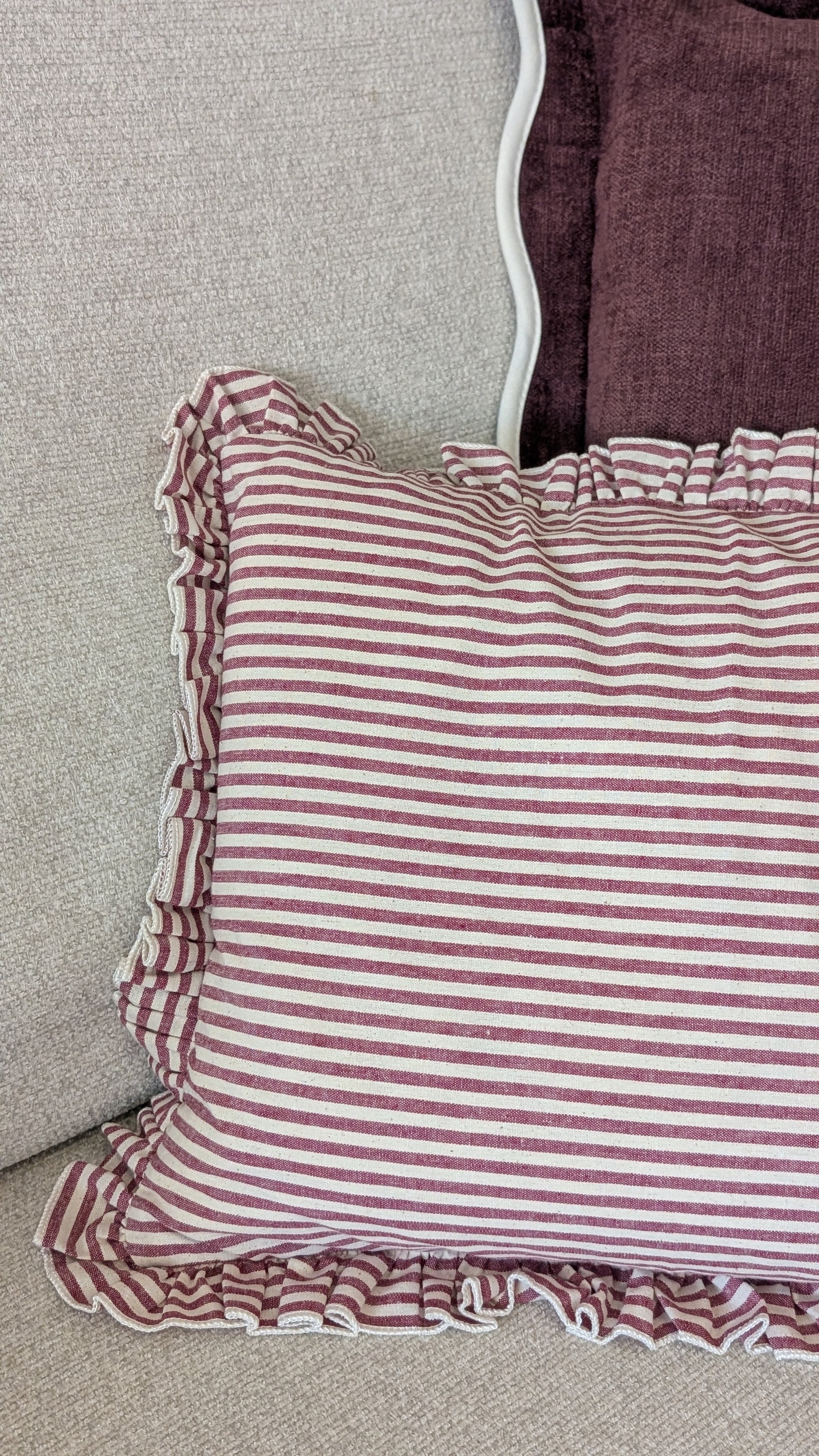 Burgundy Striped Ruffle Edged Cushion Cover