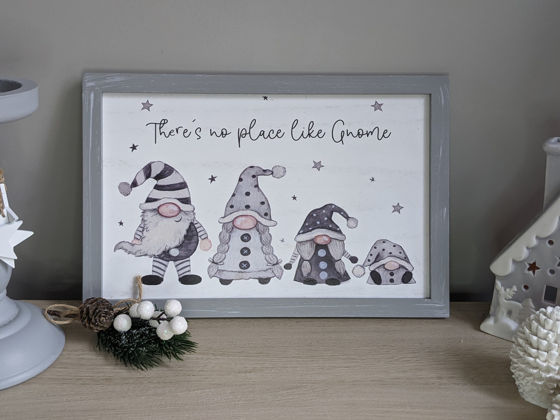It wouldn't be Christmas without gonks everywhere would it?! This plaque is a lovely addition to your Christmas set up. It's grey and white colours give it a real wintery festive feel and suit any decor style.