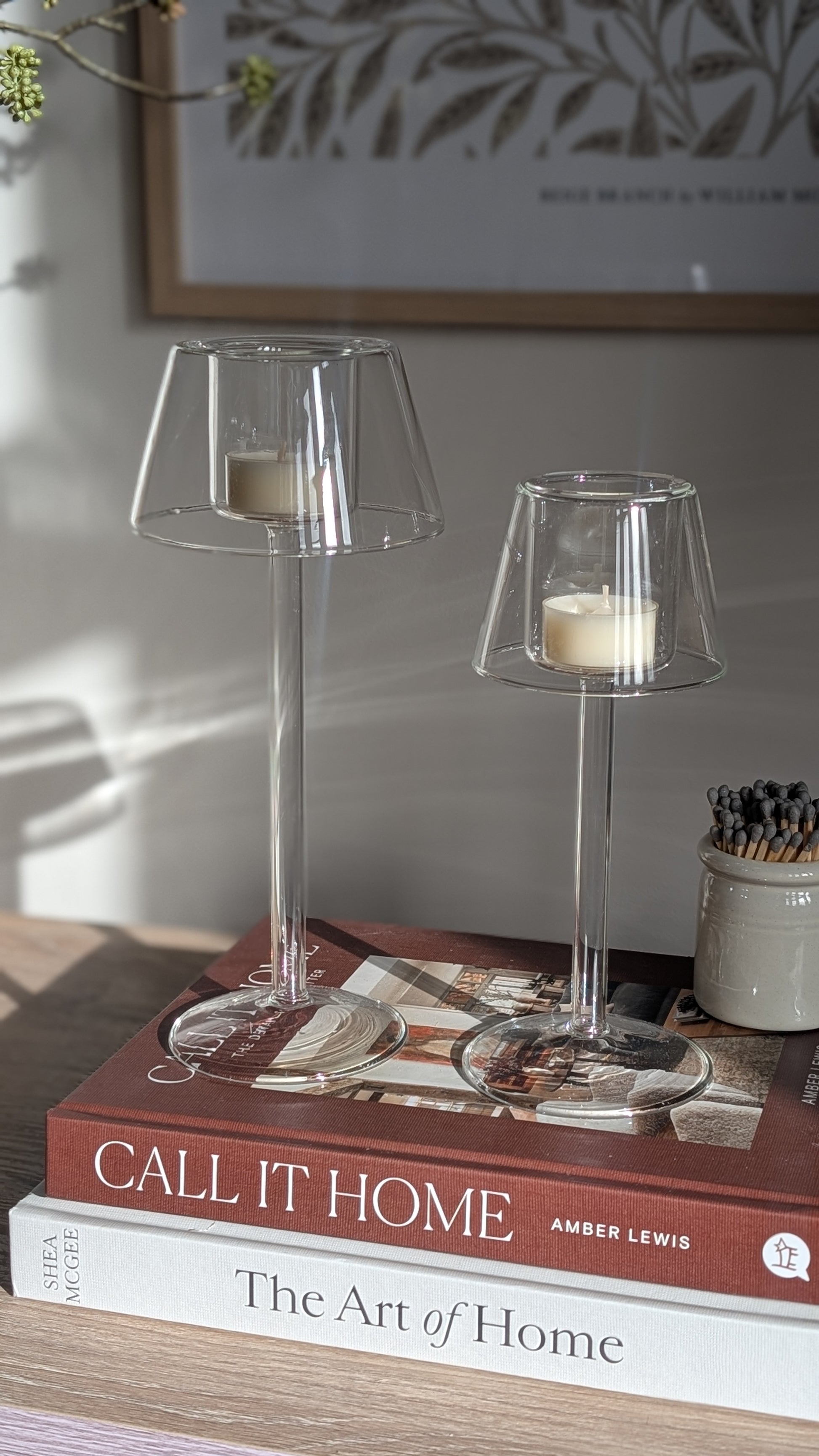 Elevate your home ambiance with these exquisite glass tealight lanterns, crafted to cast a warm, flickering glow throughout any room. Their delicate lantern silhouette brings timeless elegance to mantels, tables, and shelves, while the pristine glass construction ensures light dances beautifully through every angle. Available in two versatile sizes, you can create intimate lighting moments in bedrooms, living spaces, or outdoor settings.