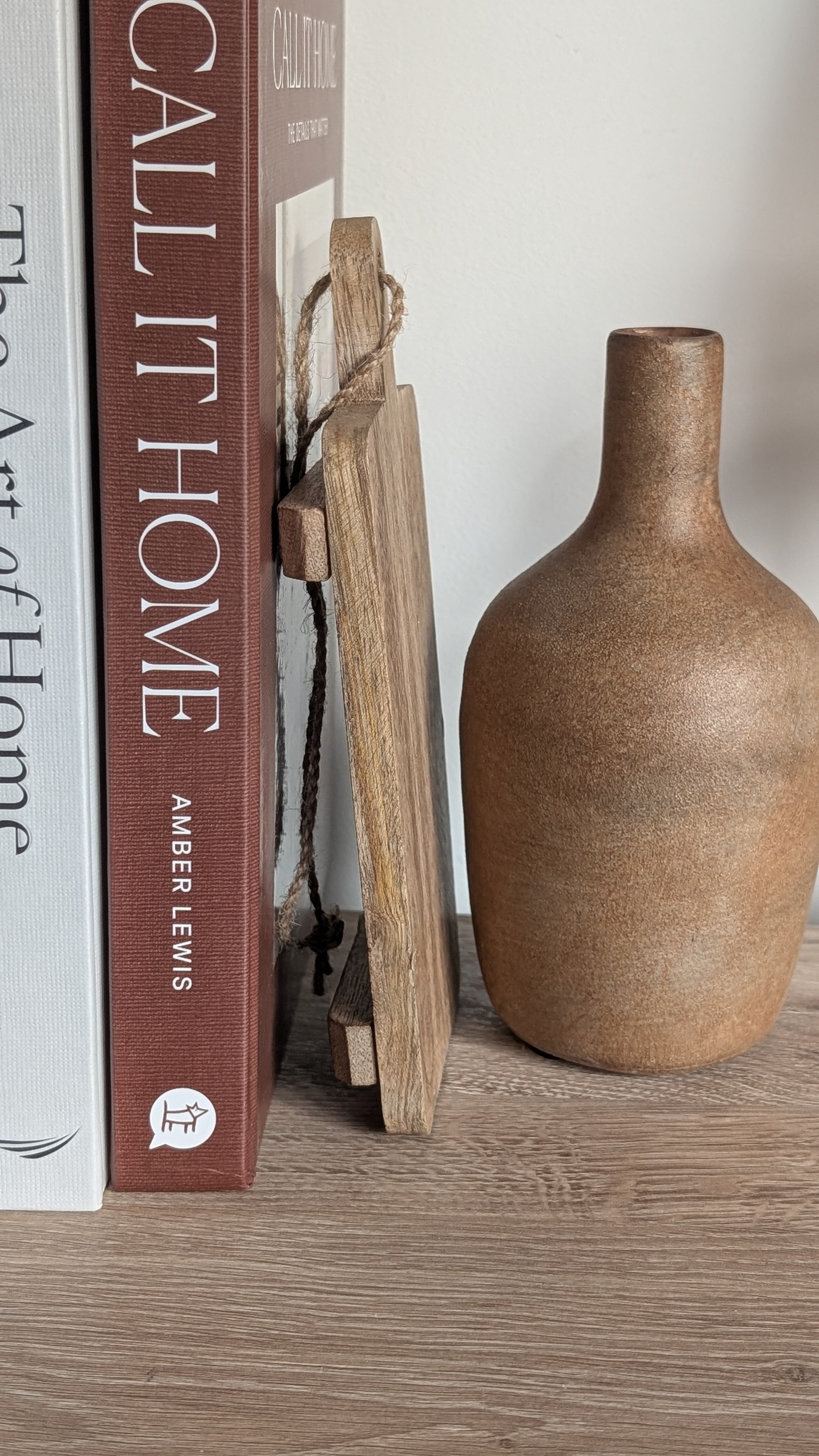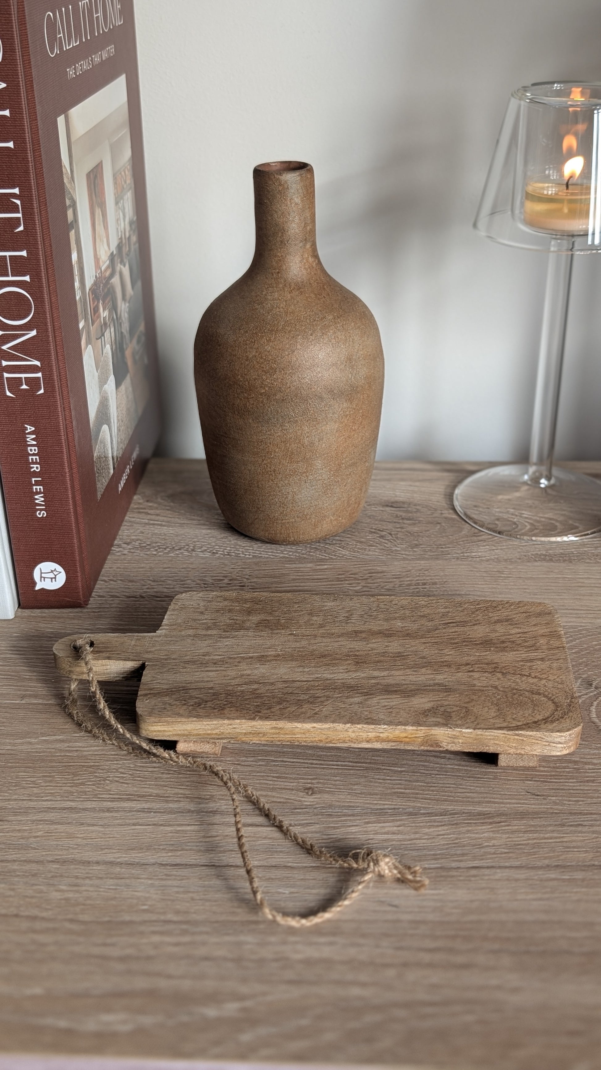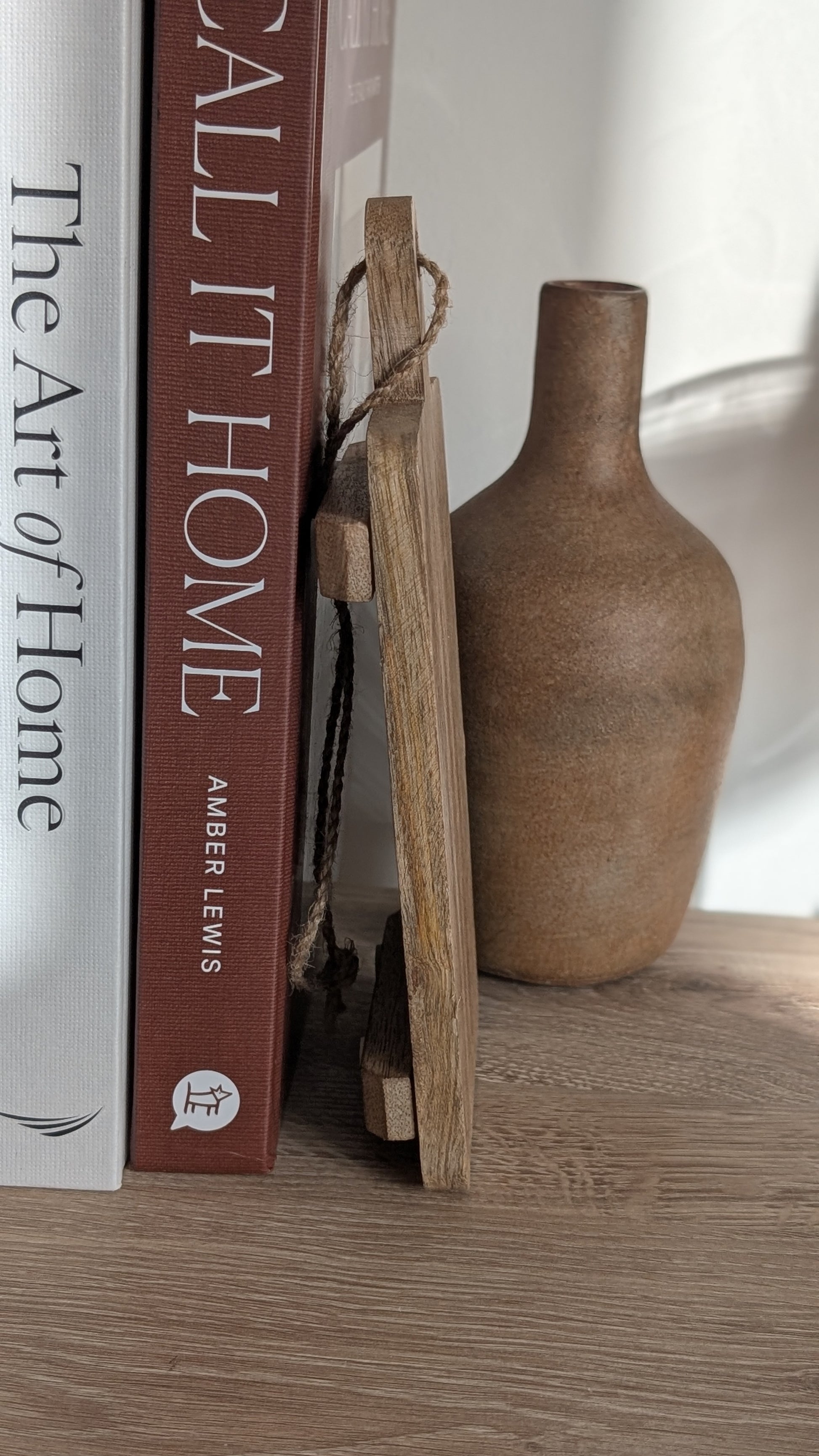 Charming and practical, this mini footed board brings rustic elegance to any room. Crafted from warm mangowood with a natural jute string handle, it's perfect for displaying kitchen essentials, styling shelves, or adding a decorative touch to your home. The sturdy feet keep it stable whether you're using it to elevate objects, serve small bites, or simply showcase your favourite pieces. A versatile addition that combines function with farmhouse charm.