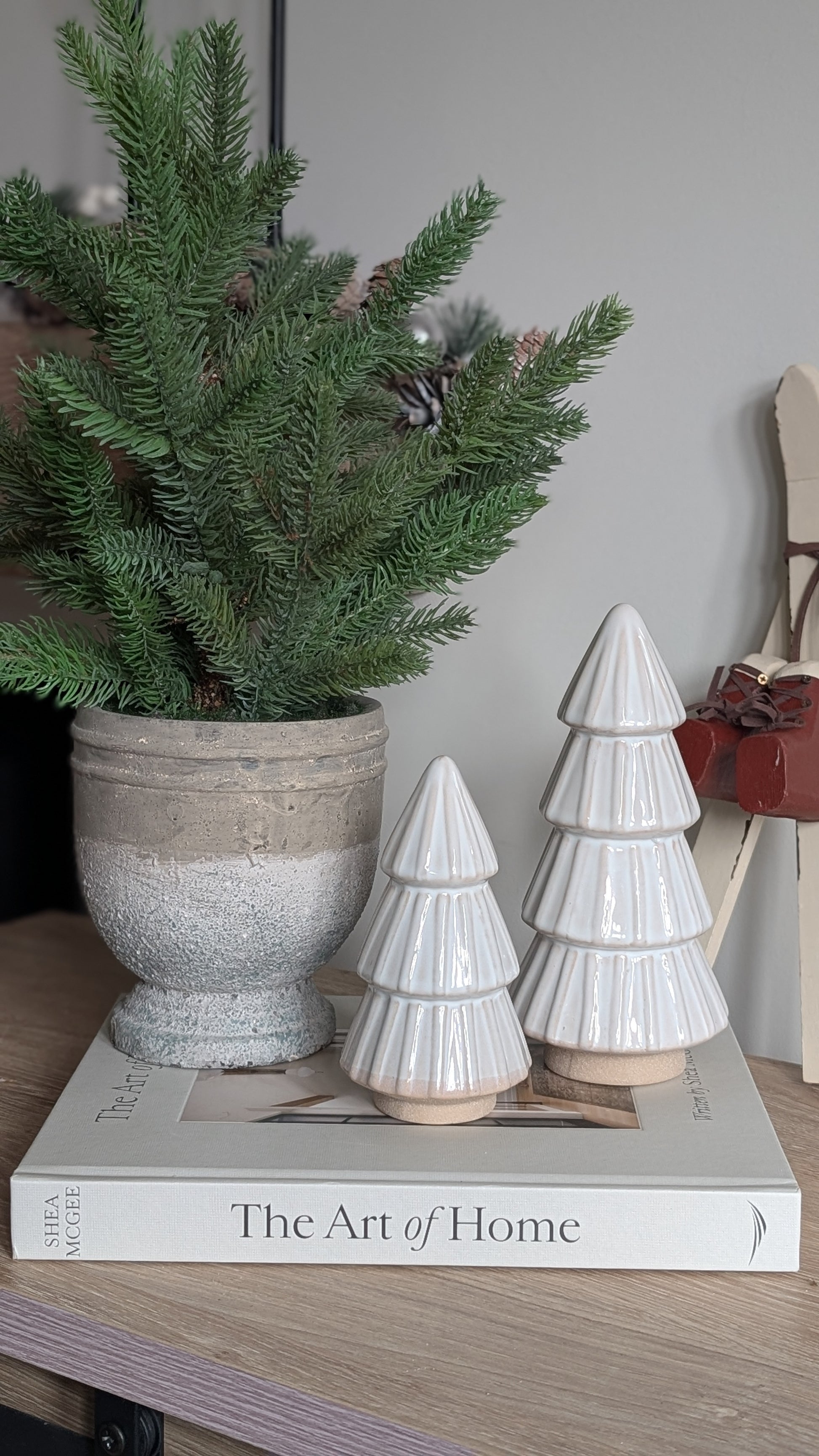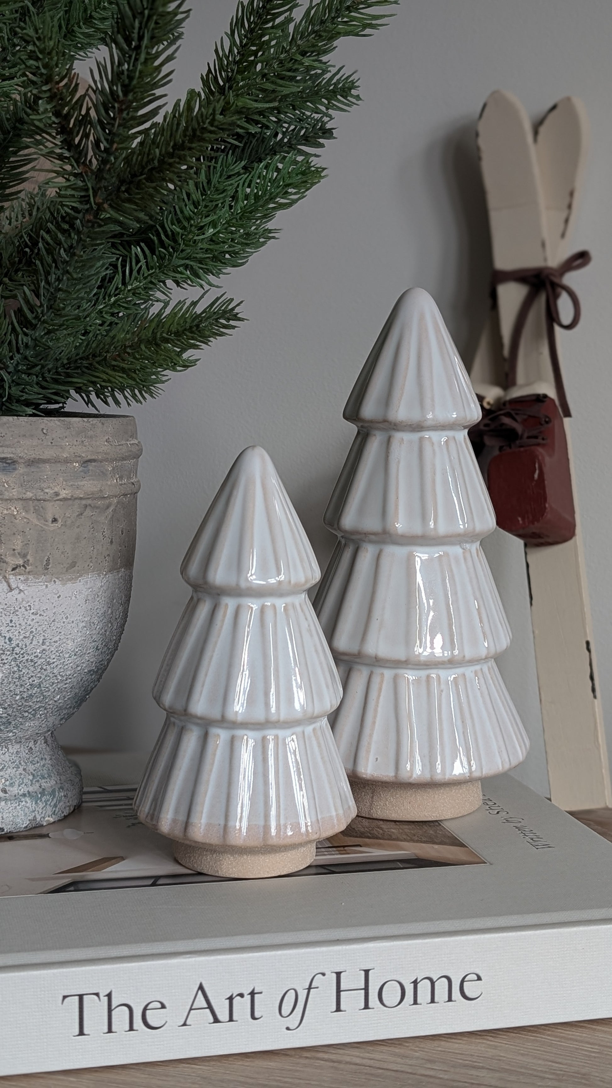 Bring understated elegance to your home with this charming set of two natural ceramic trees. Crafted in soothing neutral tones, these beautifully layered pieces complement any interior style effortlessly. Perfect for winter displays or year-round décor, they add a touch of organic warmth to shelves, mantels, and tables. Their simple yet sophisticated design makes them an ideal choice for creating a serene, cohesive look throughout your space.