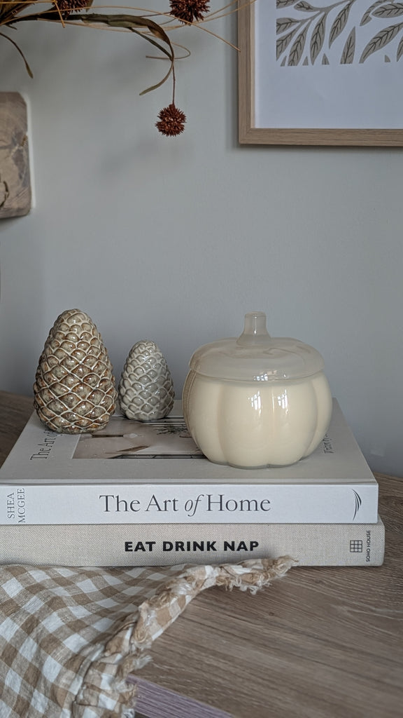 The cutest candle for cosy season! Hand-poured into a festive pumpkin-shaped vessel, it’s filled with our signature Warm and Cozy fragrance - a best-selling blend of pine, sweet orange, cinnamon, and clove that captures the inviting warmth of the season.