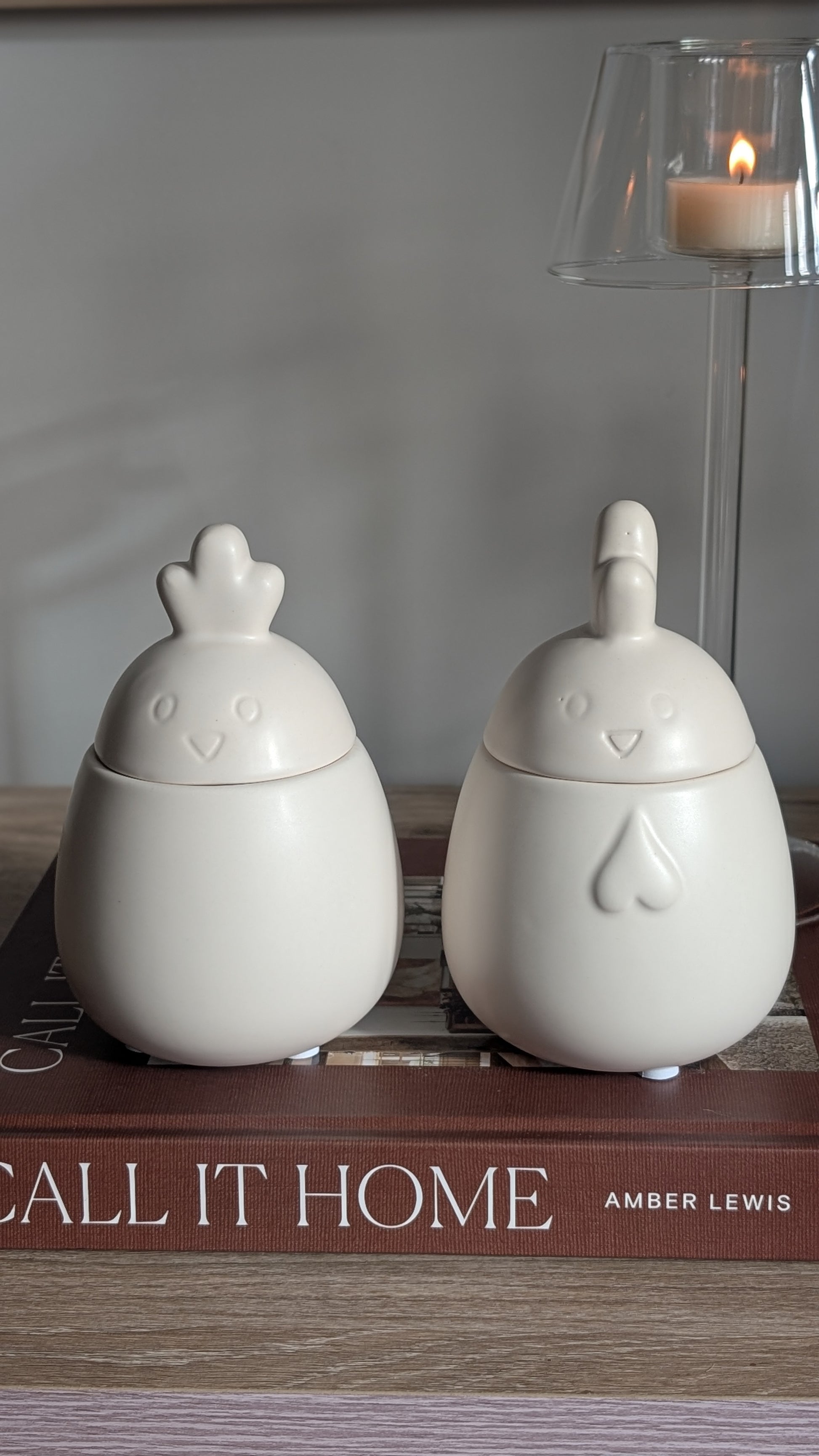 Add a touch of farmhouse charm to your home with this delightful duo of ceramic lidded pots. Featuring an adorable rooster and hen in creamy off-white, they're as practical as they are pretty. Hide Easter treats, store jewellery, or display them as standalone décor pieces that bring warmth and personality to any room.