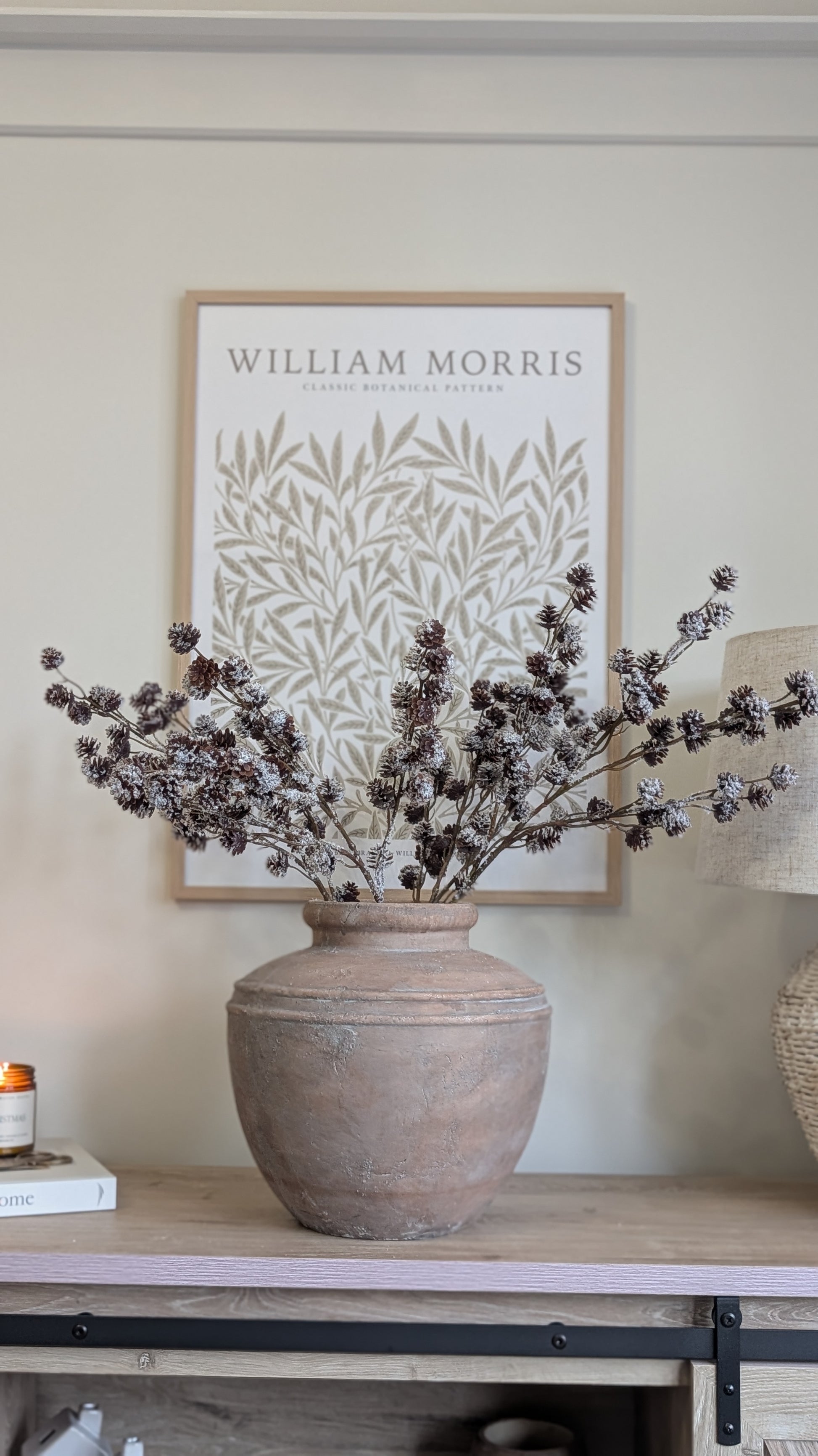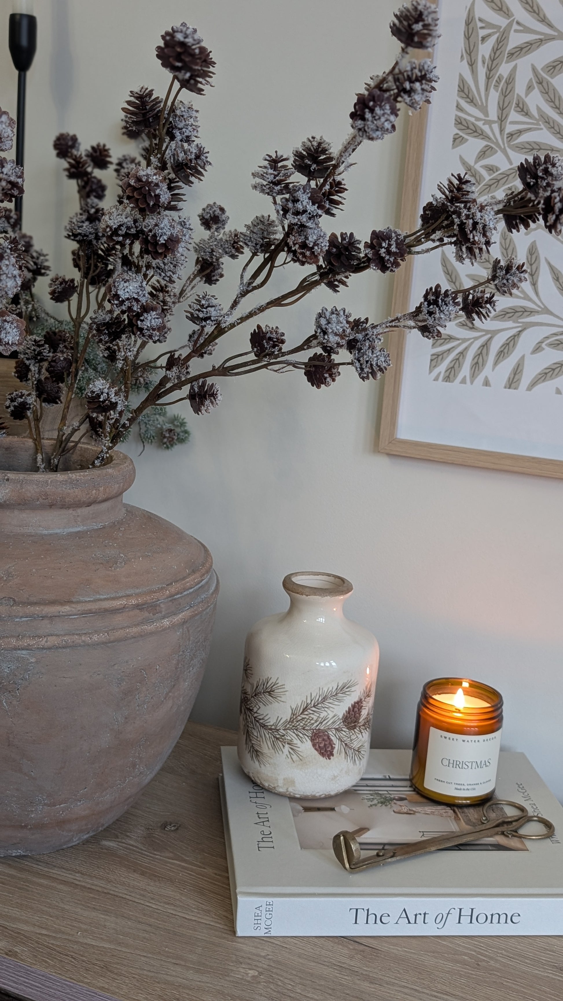 Bring the cozy charm of a woodland Christmas into your home with the Snowy Pine Cone Spray. Featuring beautifully frosted fir cones, this elegant decoration adds natural texture and rustic tones to your festive décor. Perfect for creating a warm, inviting atmosphere, it complements any holiday setting with timeless woodland beauty.