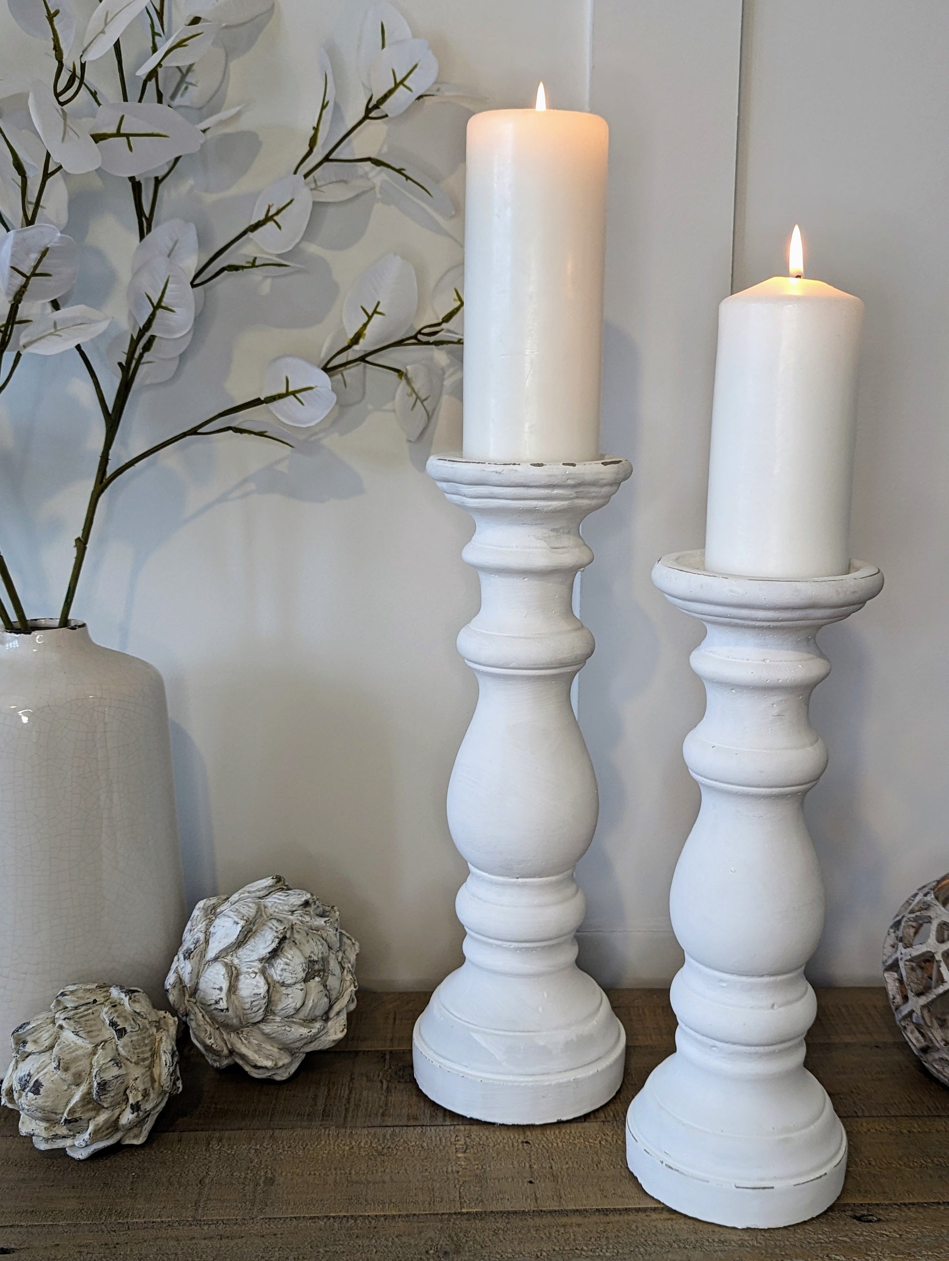 These stunning ceramic candle holders are finished in a simple rustic matte white, and have gorgeous detailing to the column.