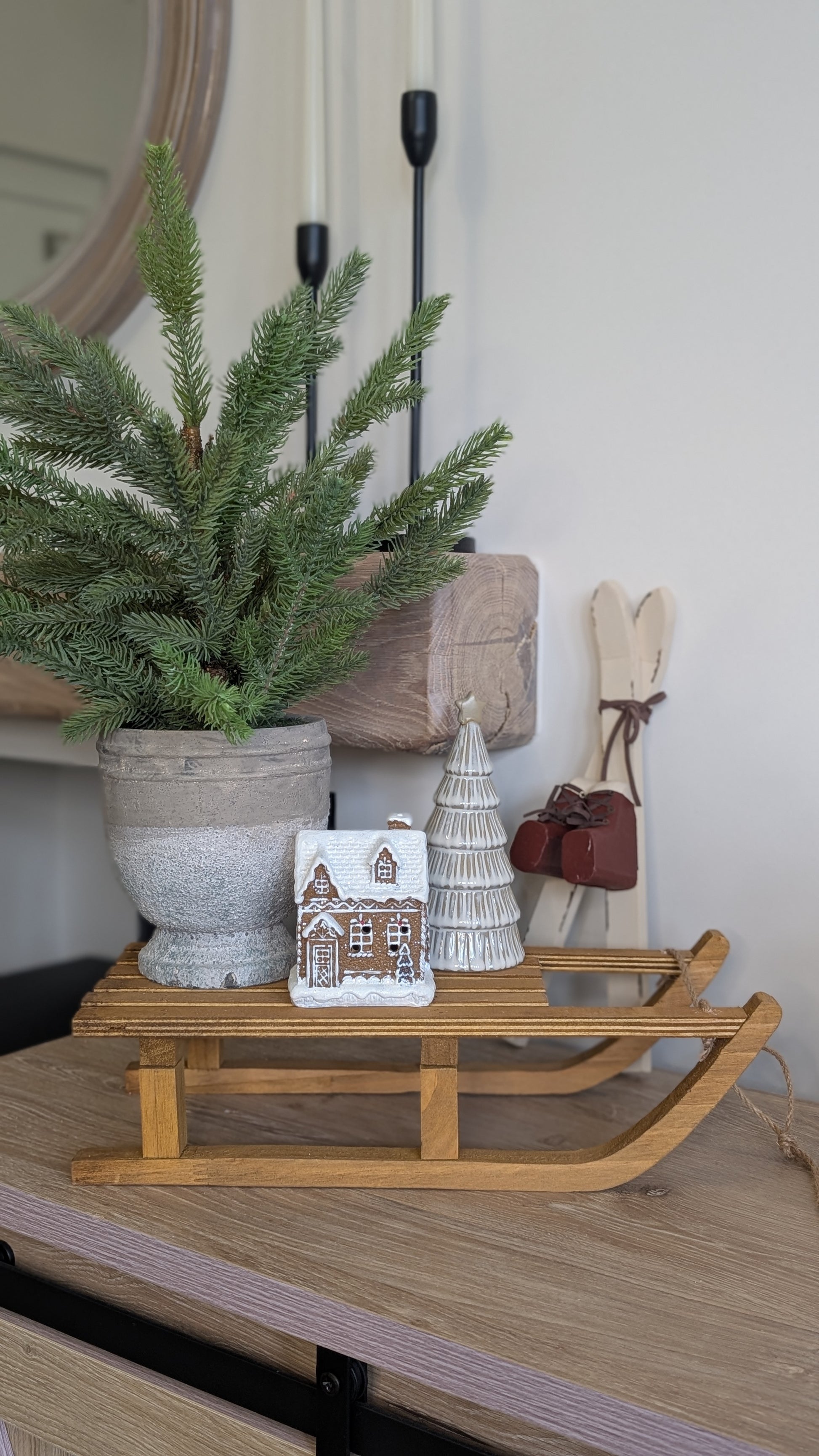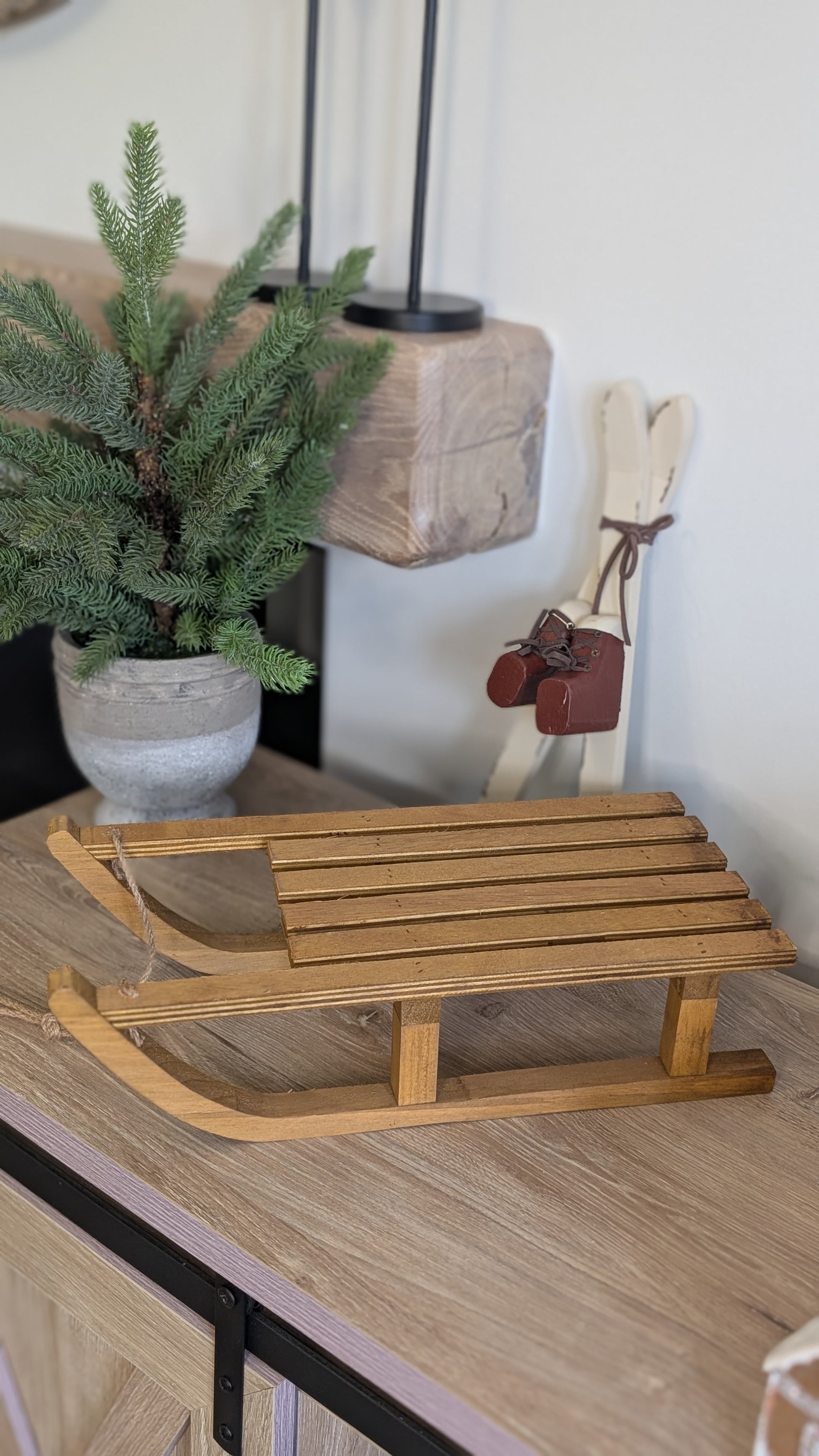 Bring a warm, festive charm to your holiday decor with this rustic wooden sled. Perfect for creating a traditional Christmas atmosphere, it pairs beautifully with Santa figurines or classic Christmas decorations, adding nostalgic appeal to any room. Its timeless design makes it an ideal centrepiece for your seasonal display.